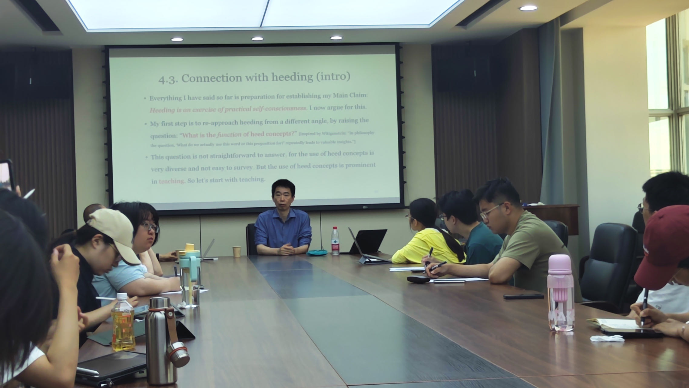 唐浩教授的讲座包括四个部分内容。其一是介绍安斯康姆式的实践知识,其二是回顾赖尔对“注意”(heeding)的讨论,其三是简述康德的“统觉”概念,其四是基于以上背景对“行动”概念的讨论。唐浩教授认为,“注意”既是倾向性的,又是即时性的。对于建构一种关于行动的理论,“注意”概念有三重功能:使行动被做“好”;整合诸子行动为一个行动整体;把行动和关于行动的自我知识关联起来。讲座之后,唐浩教授同吉林大学哲学系研究生和青年教师进行了热烈讨论,双方就讲座中的技术细节进行了深入交流。