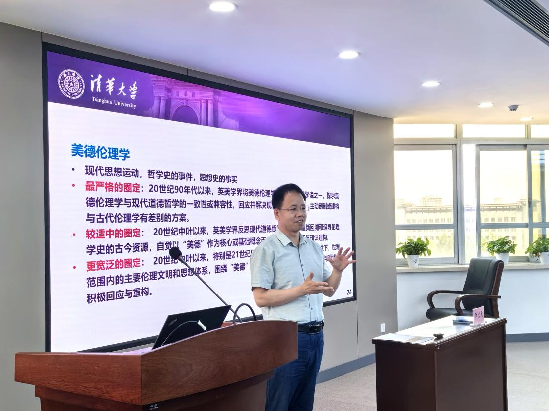 2024年6月27日早9点,由吉林大学哲学社会学院、吉林大学哲学基础理论研究中心和吉林大学社会科学研究院主办的“吉林大学哲学社会学科学学术讲座(总1193场)”在东荣大厦A904顺利举行。清华大学李义天教授围绕 “当代美德伦理学的思想进程”做了精彩的学术讲座。吉林大学哲学社会学院院长白刚教授、哲学系曲红梅教授参加了此次讲座,李坤钰老师主持讲座。