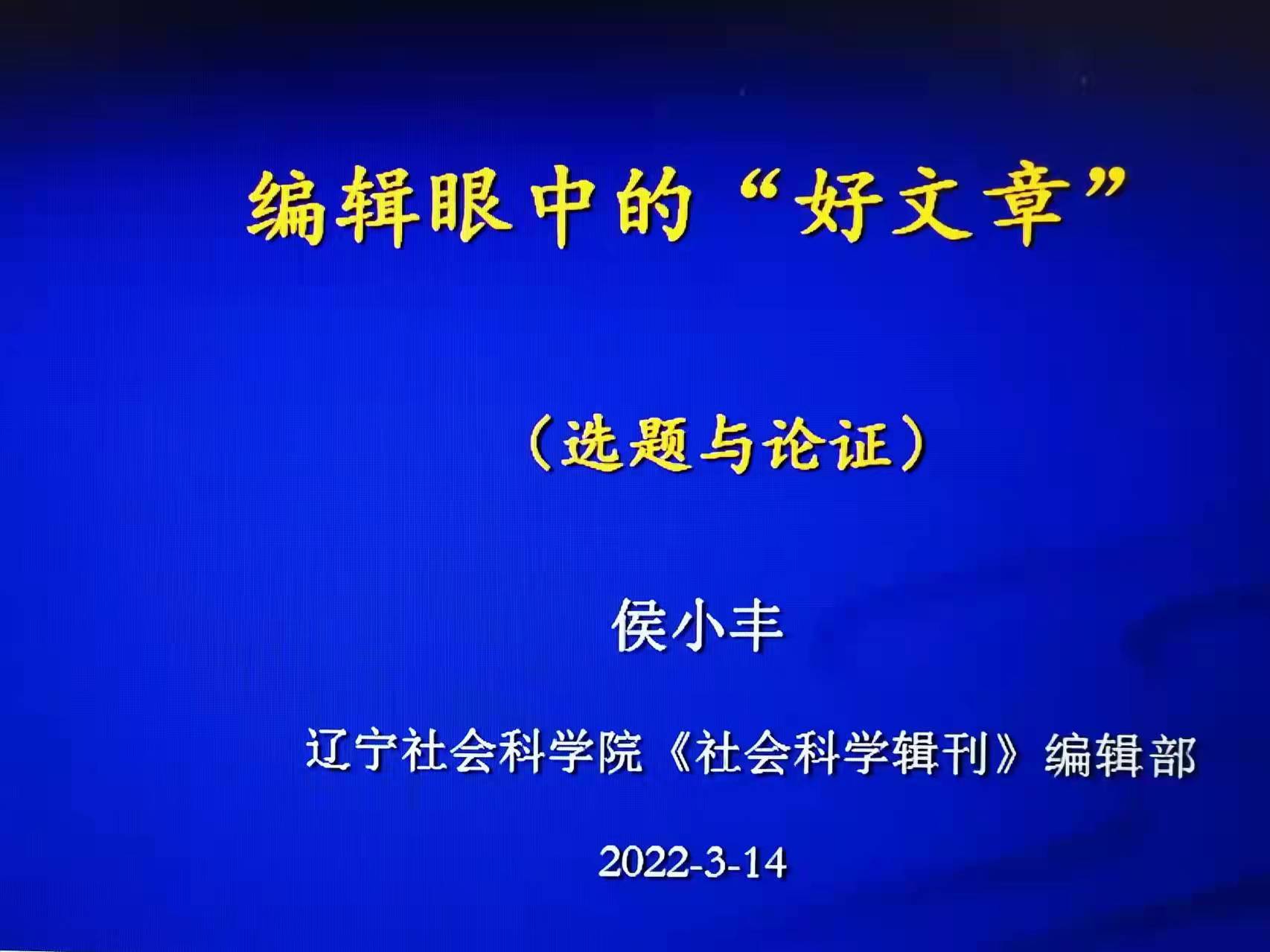 2022年3月14日晚,辽宁社会科学院研究员、《社会科学辑刊》哲学编辑侯小丰研究员应邀做吉林大学哲学社会学院名家系列讲座(第151场)。讲座题为“编辑眼中的‘好文章(选题与论证)’”。本次讲座以线上腾讯会议形式举办,由吉林大学哲学系主任白刚教授点评,吉林大学哲学社会学院李慧娟教授主持。