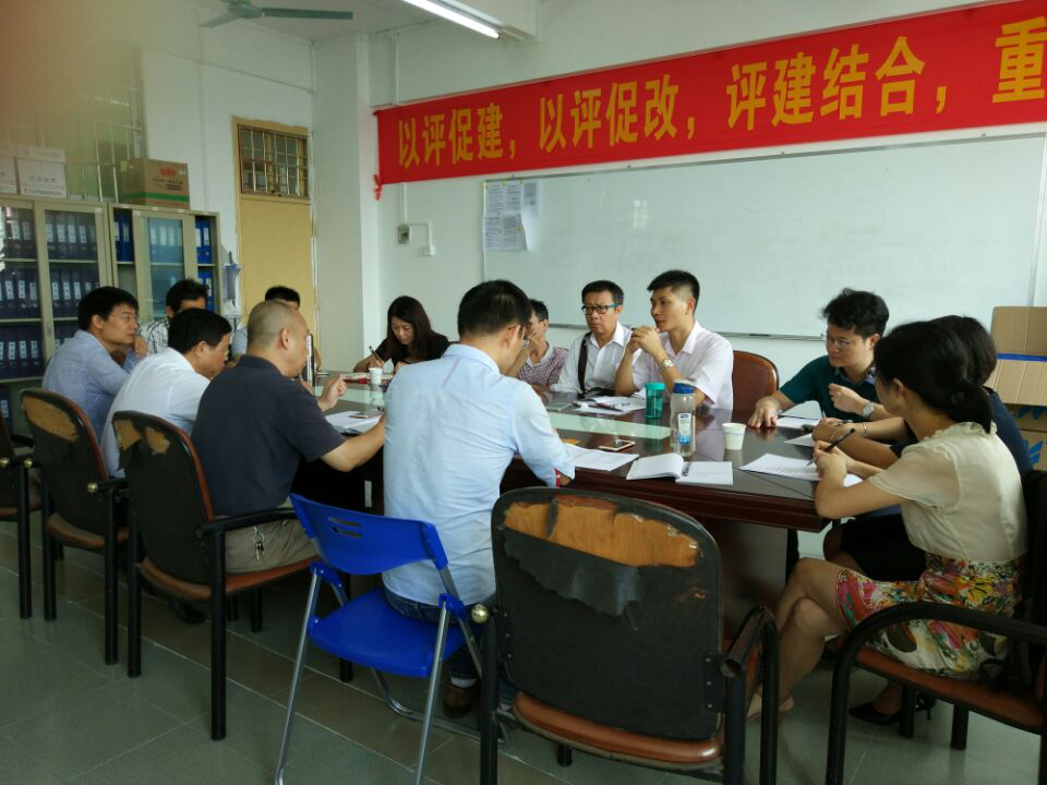 6月23日上午,潘自勉副院长到数学与系统科学学院检查审核评估工作。数科院评估小组成员参加了检查工作会议。首先,梁海华副院长介绍了自3月份开展评估工作以来,全院老师们在党政领导班子的带领下,上下团结一心,积极开展各项工作,包括加班加点进行试卷和论文的整改、自评报告和支持材料的整理和撰写,“盒子材料”的收集、办公室外墙宣传栏的策划工作等等。我们取得了迎评工作的第一阶段的初步成绩,但是由于我们是新学院,在开展各项工作中也遇到了不少问题(如支撑材料的收集等),导致影响了工作进度。接着,房亚兵书记、赵晖副书记和其他班子成员,就解决当前问题,畅谈了工作的具体想法。