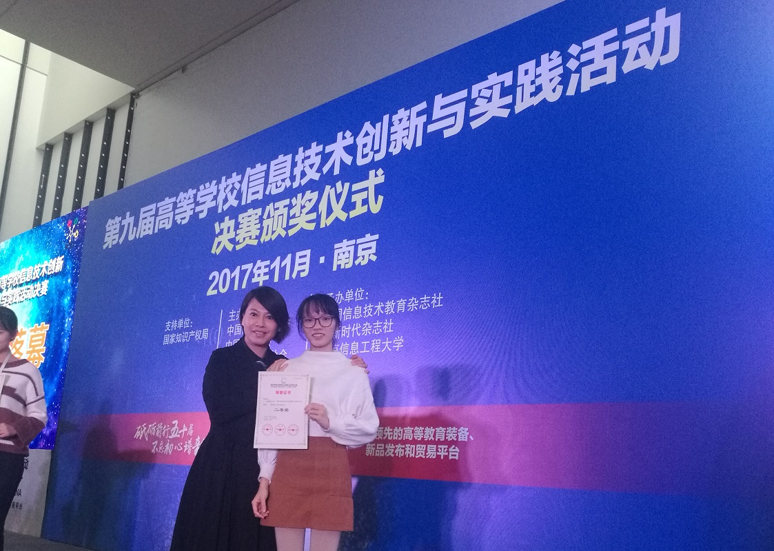 11月2日,第九届全国高等学校信息技术创新与实践活动决赛在南京信息工程大学举行。数学与系统科学学院2014级数学与应用数学(师范)本科班谢观勇同学,在张淑玲老师的指导下,经过初赛、复赛及决赛三个阶段,过关斩将,最终荣获师范创新类——“未来教师”教学技能决赛二等奖。