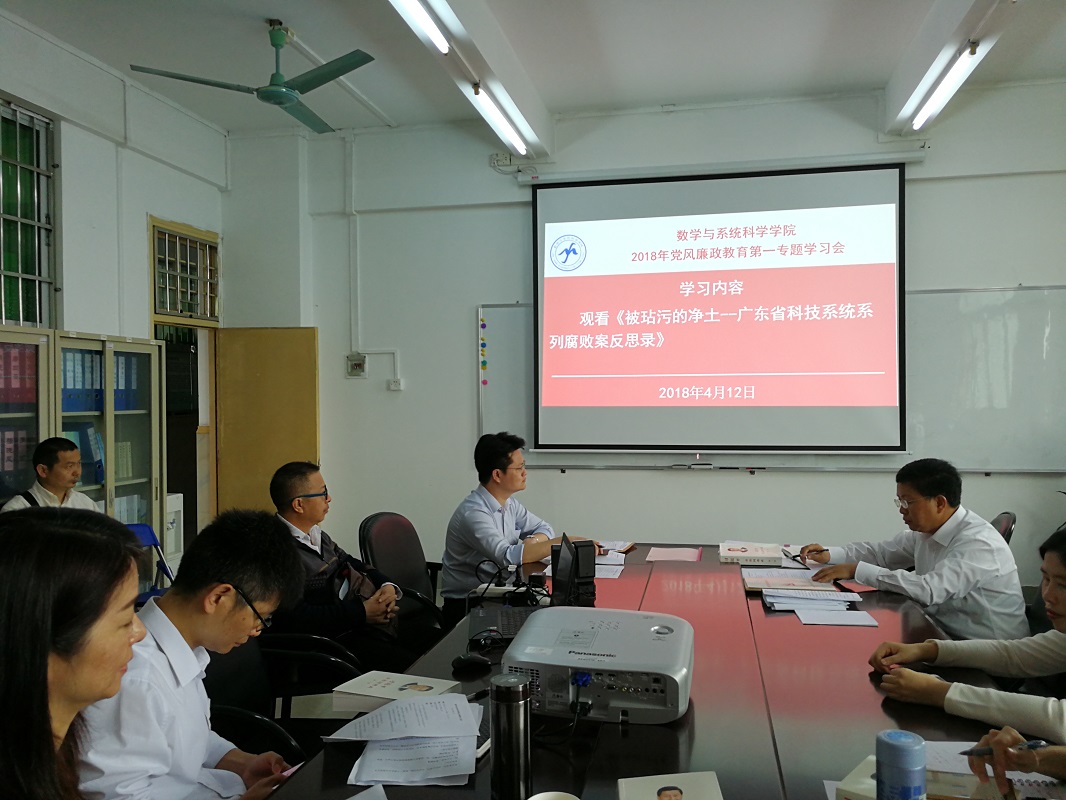 2018年4月12日,我院党总支在一教1211室,召开2018年党风廉政教育第一专题学习会,全体党员和教师出席了学习会。主要内容:一是解读宣讲《2018年教师落实廉政建设责任书》和《2018年教师落实意识形态与维护校园安全稳定工作责任书》有关内容,布置签定这两个责任书的相关工作;二是布置开展党风廉政建设自查工作;三是观看《被玷污的净土--广东省科技系统系列腐败案反思录》。