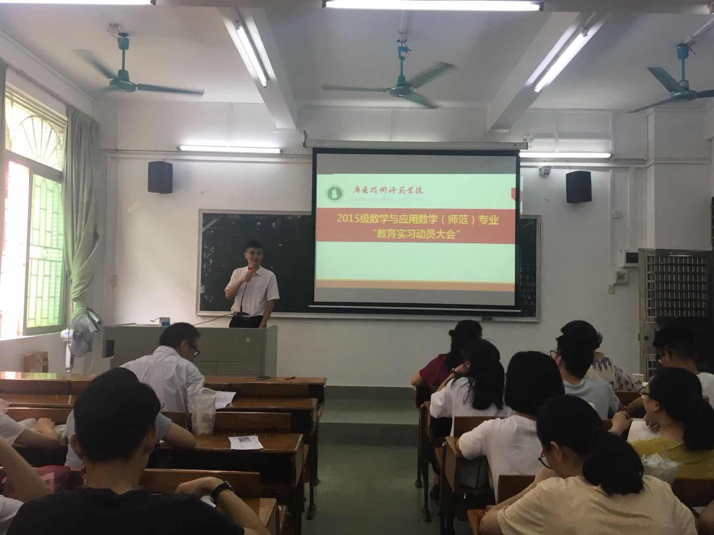 5月23日(周三)下午,数学与应用数学系在一教106为15数师两个班的同学举行了教育实习动员大会。数学与系统科学学院梁海华副院长、赵珲副书记、数学与应用数学系肖黎明主任和张淑玲老师、辅导员李秋老师参加了实习动员大会。会议由肖黎明主任主持。