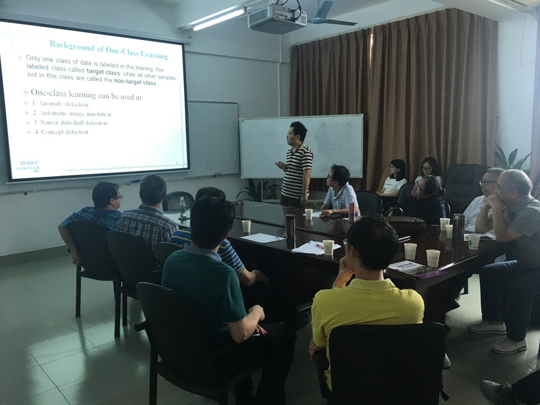 广东工业大学刘波教授,于2018年06月27下午16:30-17:30,在校本部第一教学楼1211室,为我们做了面向噪声标签的异常点侦测学习学术报告。该报告主题是面向噪声标签的异常点侦测学习问题,并把少量异常点样本引入学习,从而提高异常点侦测分类器的预测能力。报告后,数学学院老师积极参与讨论,并和刘教授交流相关学术问题!