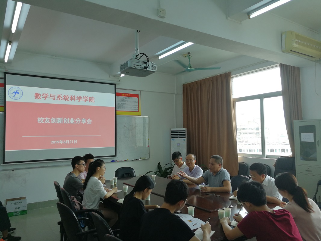 2019年6月21日上午,在校本部1211室,数学与系统科学学院邀请校友与学生分享创新创业经验。学院党总支书记房亚兵、院长梁海华、辅导员王婷婷以及学生代表出席了分享会。会议由学院党总支书记房亚兵主持。