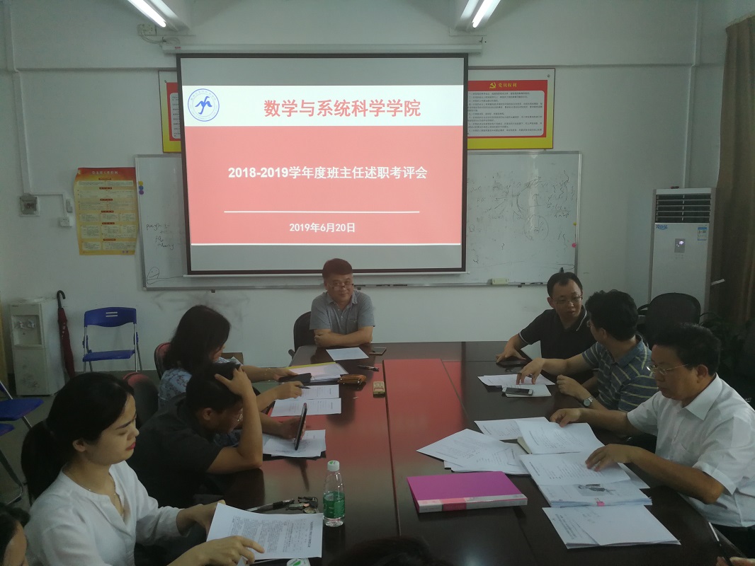 根据《广东技术师范学院班主任工作实施办法》和《数学与系统科学学院班主任考核工作实施细则》精神,我院于2019年6月20日召开班主任考核述职会议,全体班主任和学院班主任考核工作领导小组成员出席了会议。