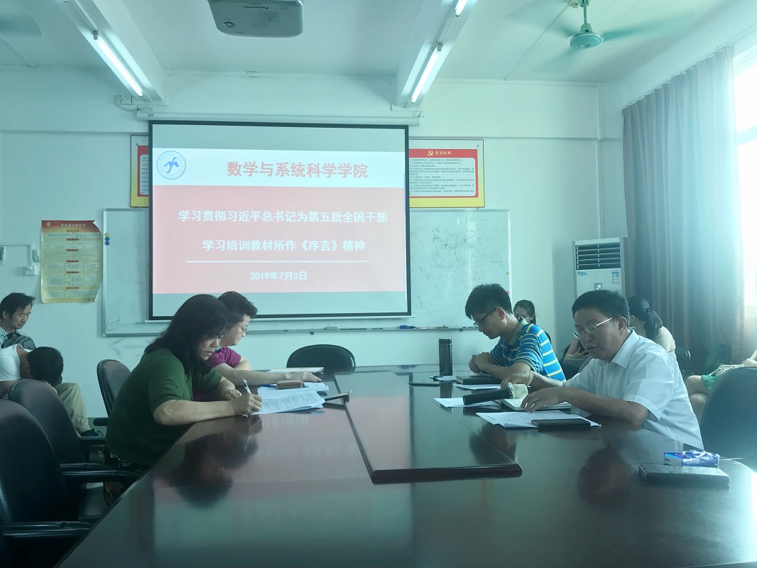 2019年7月3日下午,在校本部一教1211室,我院召开全体教职工会议,组织学习习近平总书记为第五批全国干部学习培训教材所作《序言》精神。