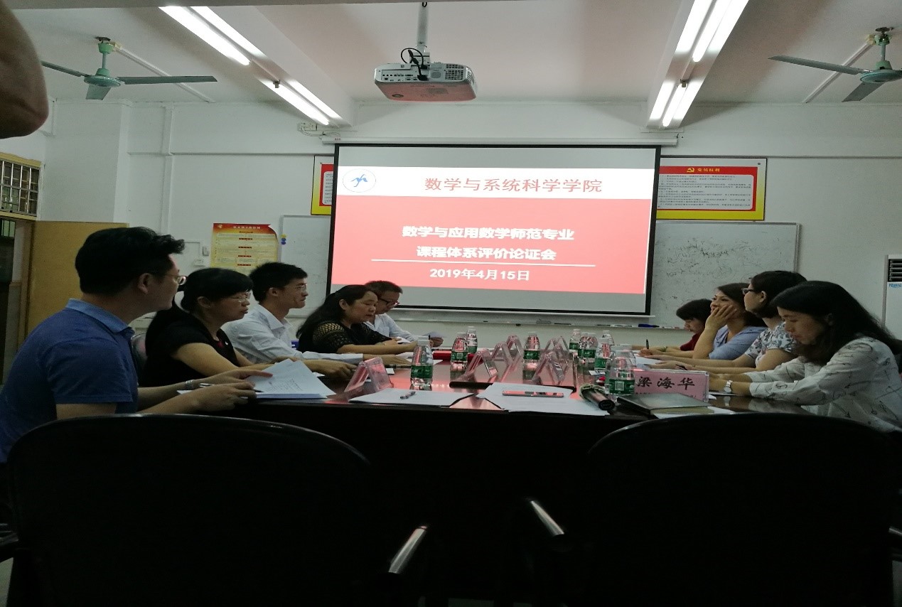 最后,对数师专业的课程体系进行评价,作为今后课程建设工作的重要参考。为此,4月15日,我院再次邀请了华南师范大学数学科学学院的冯伟贞副院长和多位中学教师来我校指导工作,与数师专业的全体专任教师一起参与了课程体系评价会,最终决定增设《中学生心理健康》,《班级管理》等与中学数学教育有关的课程,增加与数学师范技能有关的实践课程:《数学师资孵化课程》,进一步加强数师专业学生数学师范技能的训练等。