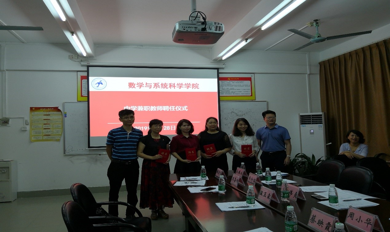 首先,进一步完善数师专业的数学教育团队师资。为此,我院聘请了5名中学教师作为我院兼职教师。2月28日下午,我院在第一教学楼1211室举行了兼职教师的聘任仪式。五位兼职教师均是教学一线的优秀教师,他们分别为:海珠区黄埔中学校长魏凯飞校长、黄埔中学数学学科组长熊喜阳老师以及黄埔中学骨干教师蔡映霞老师、华南师范大学附属中学数学学科组长马腾冰老师和海珠外国语实验中学数学学科组长周小华老师。
