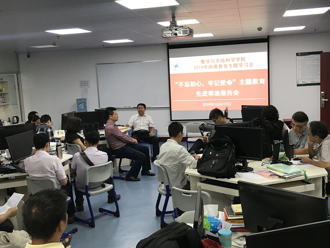 10月17日下午,在东校区工业中心506室,数学与系统科学学院组织全体教师,集体观看全省“不忘初心、牢记使命”主题教育先进事迹报告会。