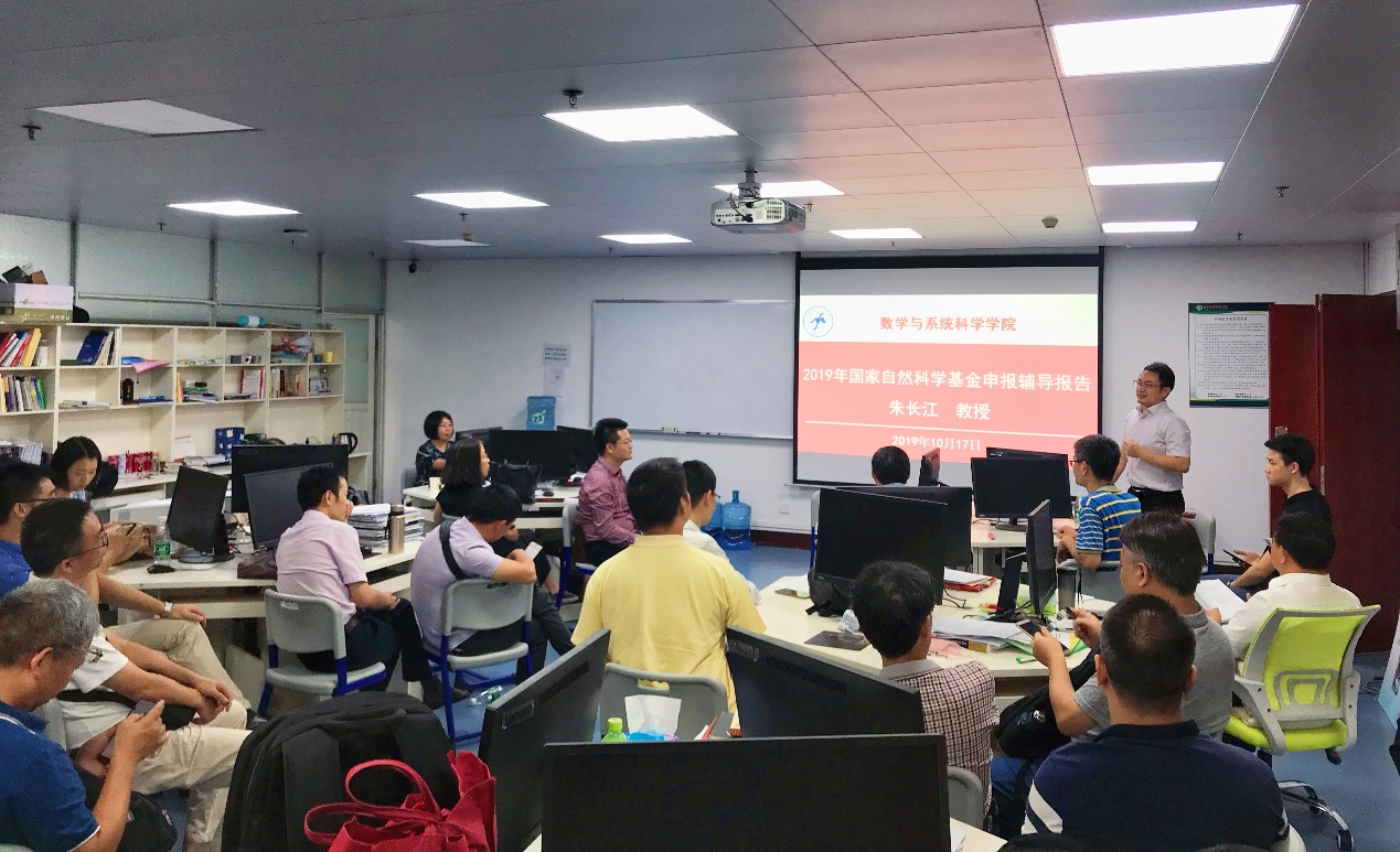 为做好2020年国家自然科学基金的申报工作,2019年10月17日下午4点,在东校区工业中心506,数学与系统科学学院邀请华南理工大学朱长江教授对国家自然科学基金的申报书的撰写等作辅导报告。