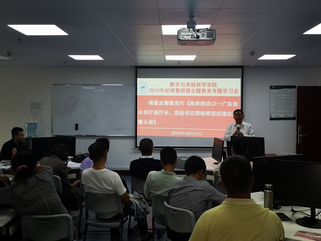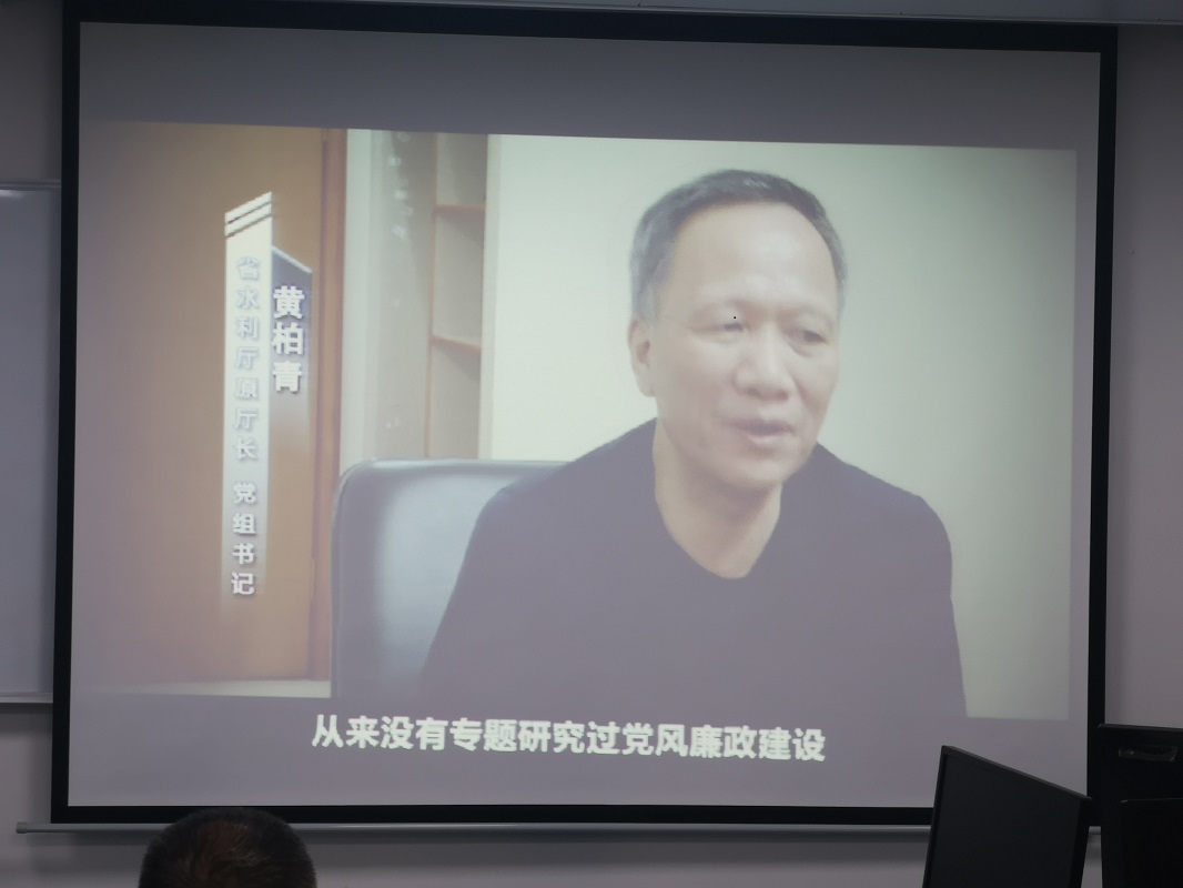 根据“不忘初心、牢记使命”主题教育安排,2019年10月31日下午,在东校区工业中心506室,我院组织党员和教师观看廉政警示教育片《致命的决口—广东省水利厅原厅长、党组书记黄柏青违纪违法案警示录》。