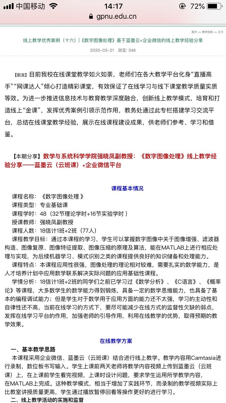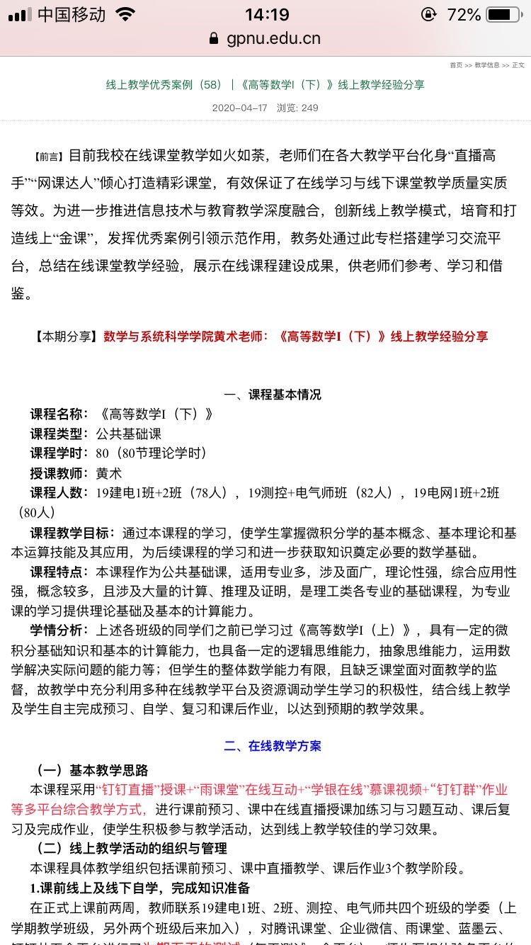 (c)在学院工作群分享优秀案例,讨论交流线上教学平台的利弊,推荐给相关教师,并做好各项紧急情况的备案。