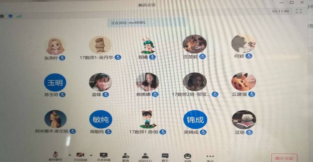 为了更好地落实教育实习工作,数学系于7月2日下午3点,通过腾讯会议召开2017级数学师范专业学生的云端实习动员会。学院副院长游志福、数学系主任黄凤英、数师专业负责人陈玉明、数学系副主任王燕,以及张淑玲老师出席了会议。