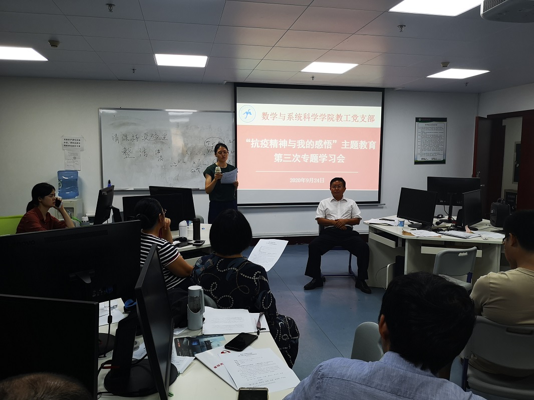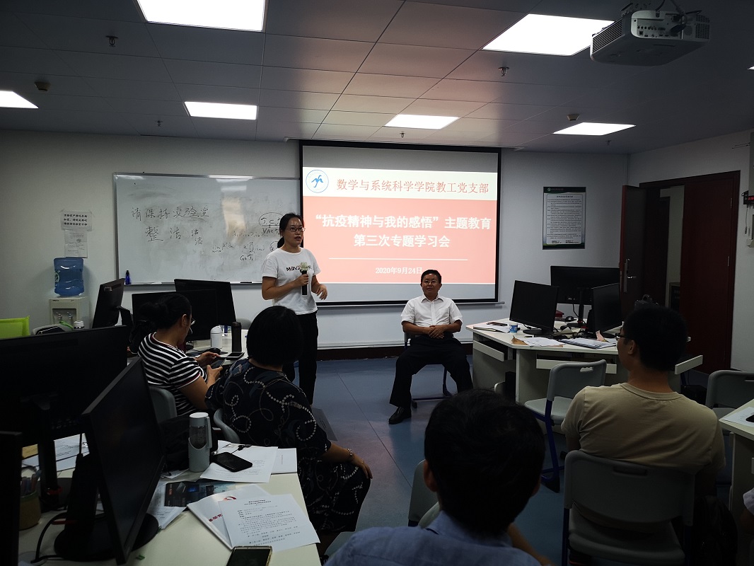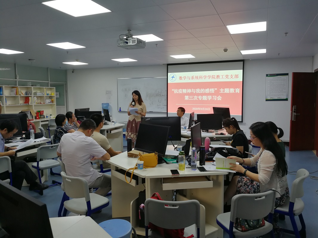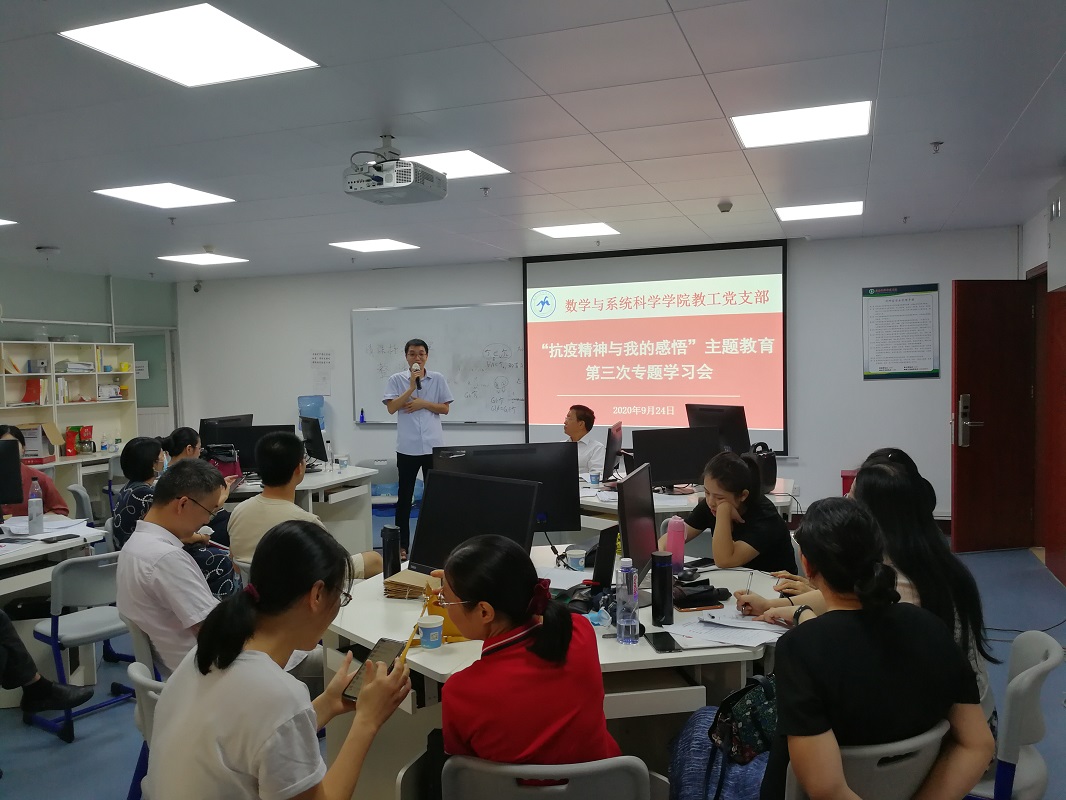 根据《数学与系统科学学院2020年“书记项目”实施方案》的部署,9月24日,我院教工党支部召开党支部会议暨“抗疫精神与我的感悟”主题教育第三次专题学习会,全体教工党员出席了学习会。会议由教工党支部书记娄曼丽同志主持。