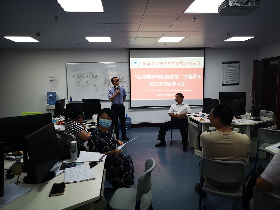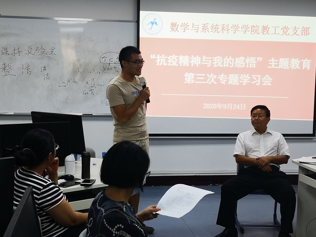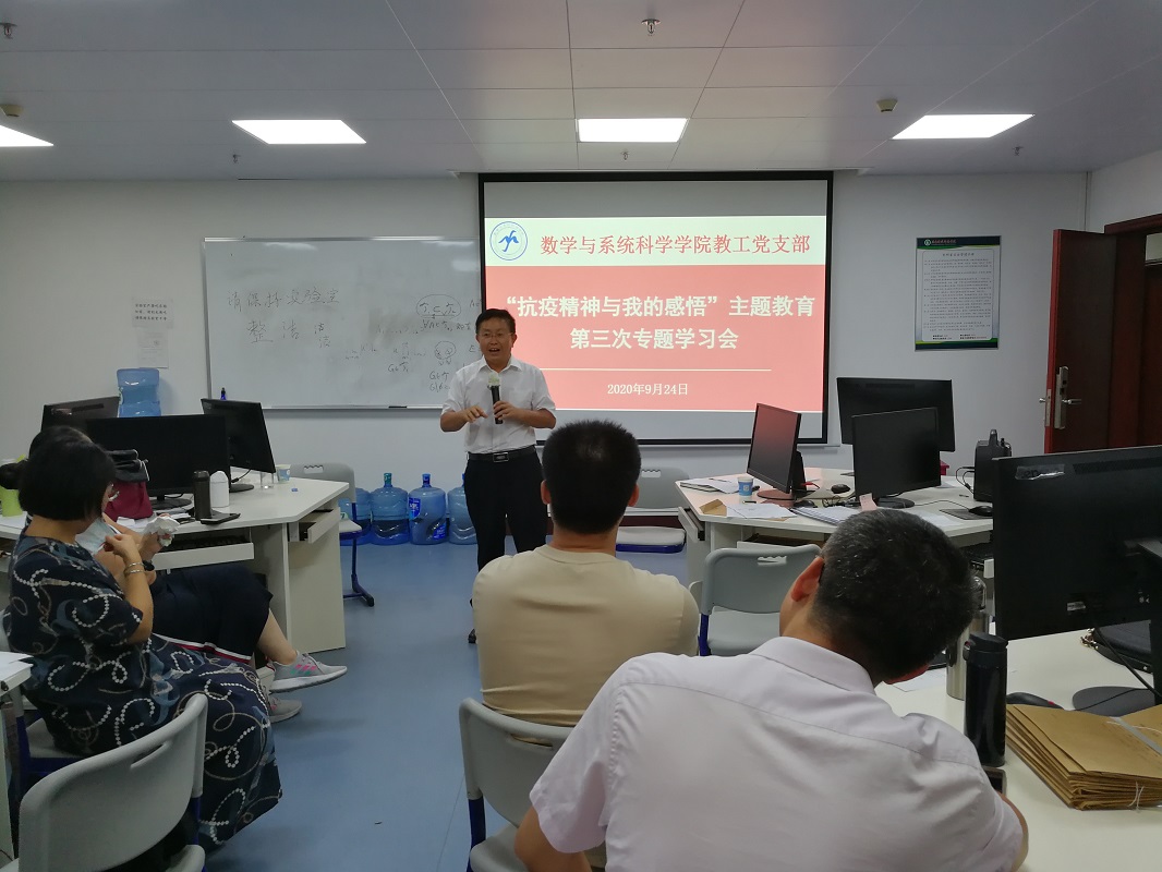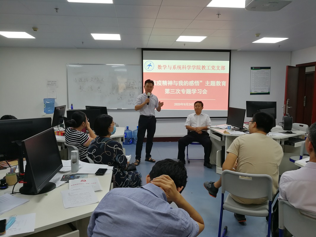 根据《数学与系统科学学院2020年“书记项目”实施方案》的部署,9月24日,我院教工党支部召开党支部会议暨“抗疫精神与我的感悟”主题教育第三次专题学习会,全体教工党员出席了学习会。会议由教工党支部书记娄曼丽同志主持。