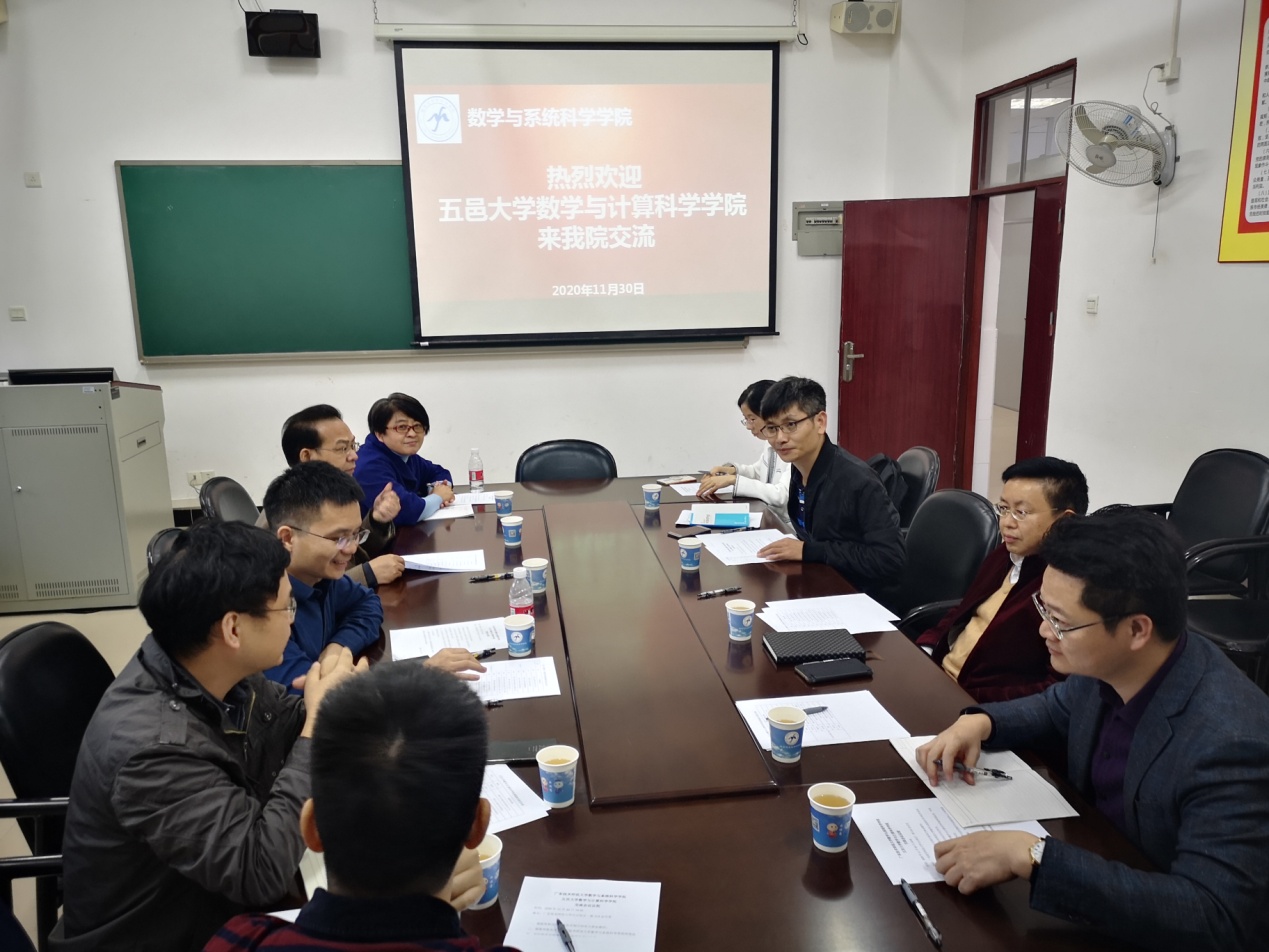 11月30日,五邑大学数学与计算科学学院关开中院长、党总支陈海平书记等一行6人到我院交流访问。我院院长梁海华、党总支书记房亚兵、副院长游志福、数学与应用数学专业负责人陈玉明及副系主任王燕参加了座谈。