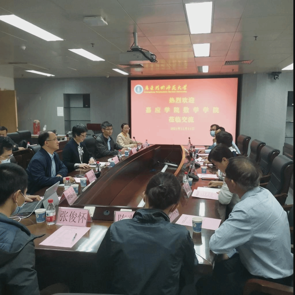 11月11日,嘉应学院数学学院党委书记杨燕、院长黄可坤一行到我院交流。学院党政领导班子成员、各系主任、专业负责人参加交流座谈会。座谈会由学院院长梁海华主持。