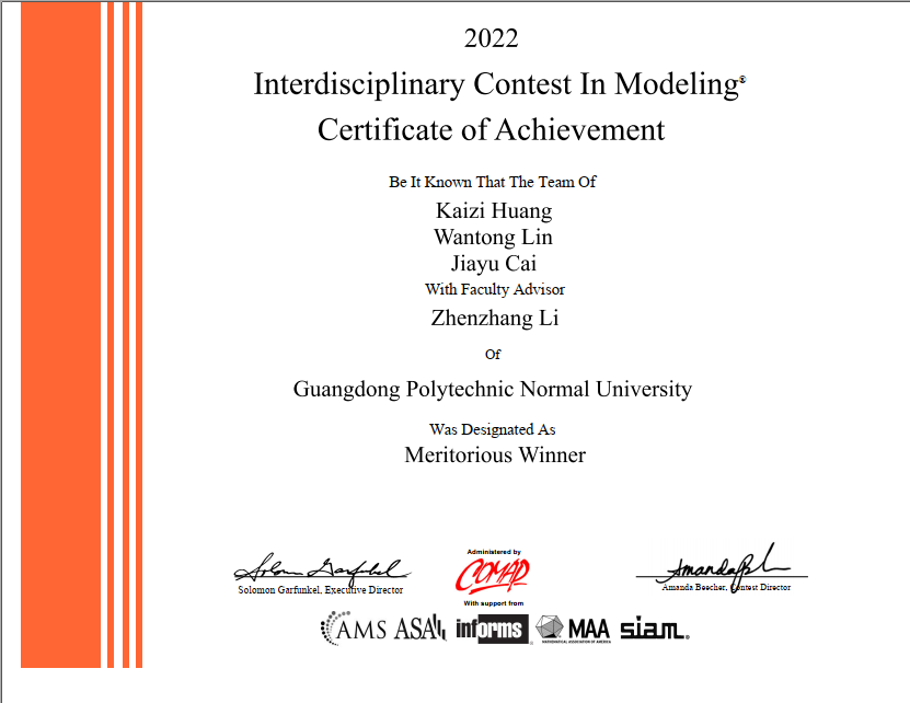 近日,2022年美国大学生数学建模竞赛与交叉学科数学建模竞赛(MCM&ICM)成绩揭晓。我院学子克服疫情困难,再创佳绩,夺得国际一等奖(Meritorious Winner)1项,国际二等奖(Honorable Winner)6项。