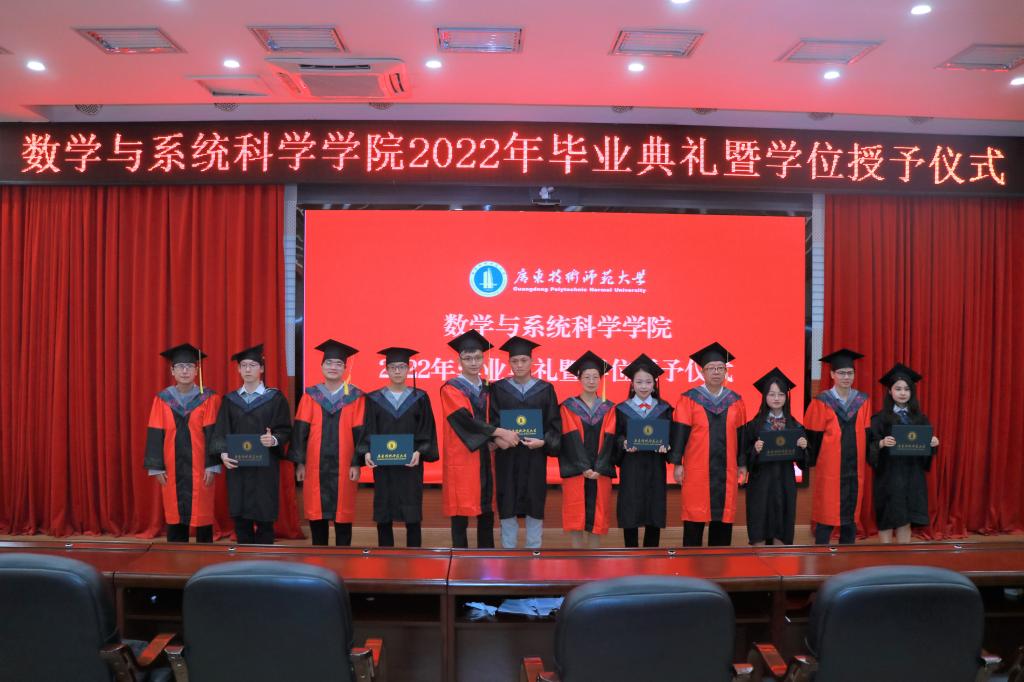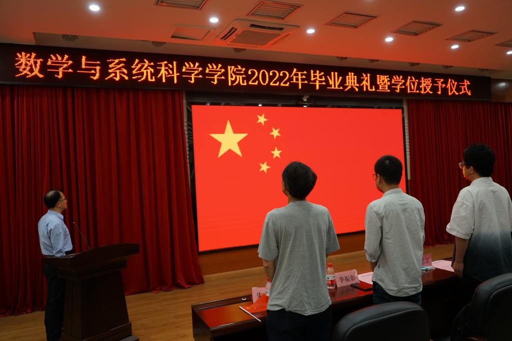 2022年6月23日下午,数学与系统科学学院2022届学生毕业典礼暨学位授予仪式在学校白云校区第三教学楼104学术报告厅举行。我院党委书记白雪飞、院长梁海华、副院长陈月红、副院长陈志景,教师代表、学院辅导员、毕业班班主任以及2022届毕业生代表参加典礼仪式,仪式由党委副书记许国良主持。