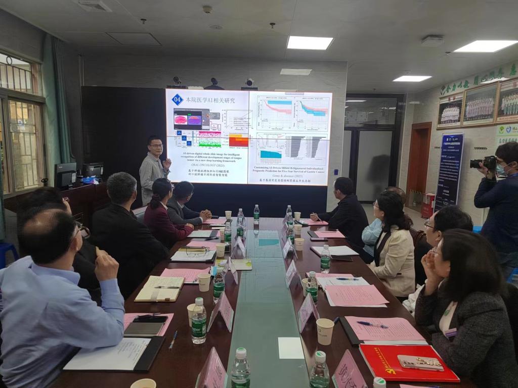 信计系李振彰主任向与会人员介绍了我院在生物医疗人工智能方面的已有成果,介绍了我院与其他医疗机构、科研院所联合开展生物医疗人工智能研究的先进案例,报告了我院联合实验室建设的思路和谋划。
