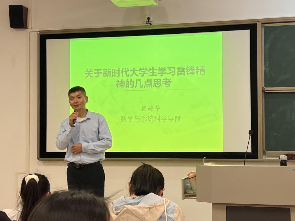 2023年3月5日是第60个学雷锋纪念日。为深入学习贯彻习近平总书记关于弘扬雷锋精神的重要指示精神,落实立德树人的根本任务,进一步加强我院学生的思想政治教育,引导学生在思想品德和专业素养的全面发展,3月8日、13日,数学与系统科学学院院长梁海华分别为河源校区2022级学生、白云校区研究生讲授了“思政第一课”。