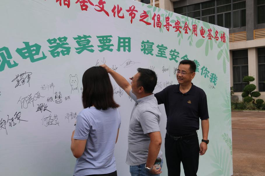 开幕式上,开展了“违规电器莫要用,寝室安全靠你我”为主题的签名活动,倡导同学们在宿舍注意用电安全,不使用违规电器。通过签名活动,师生纷纷表示了对学生宿舍安全用电的重视以及肯定。