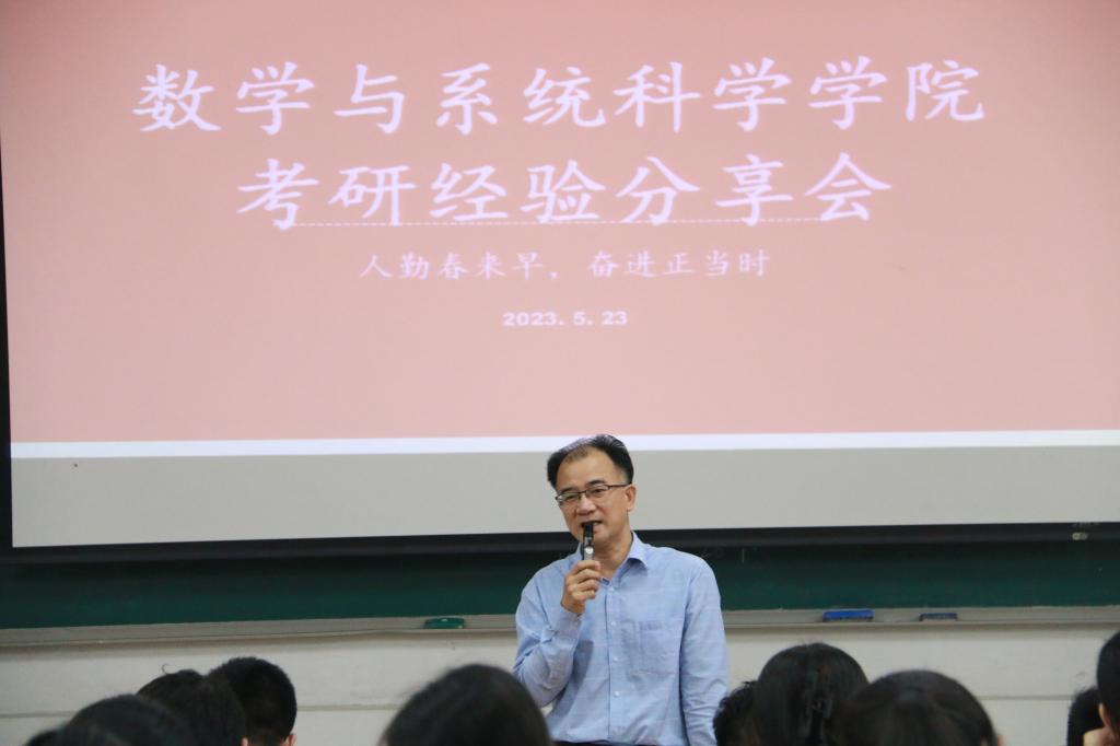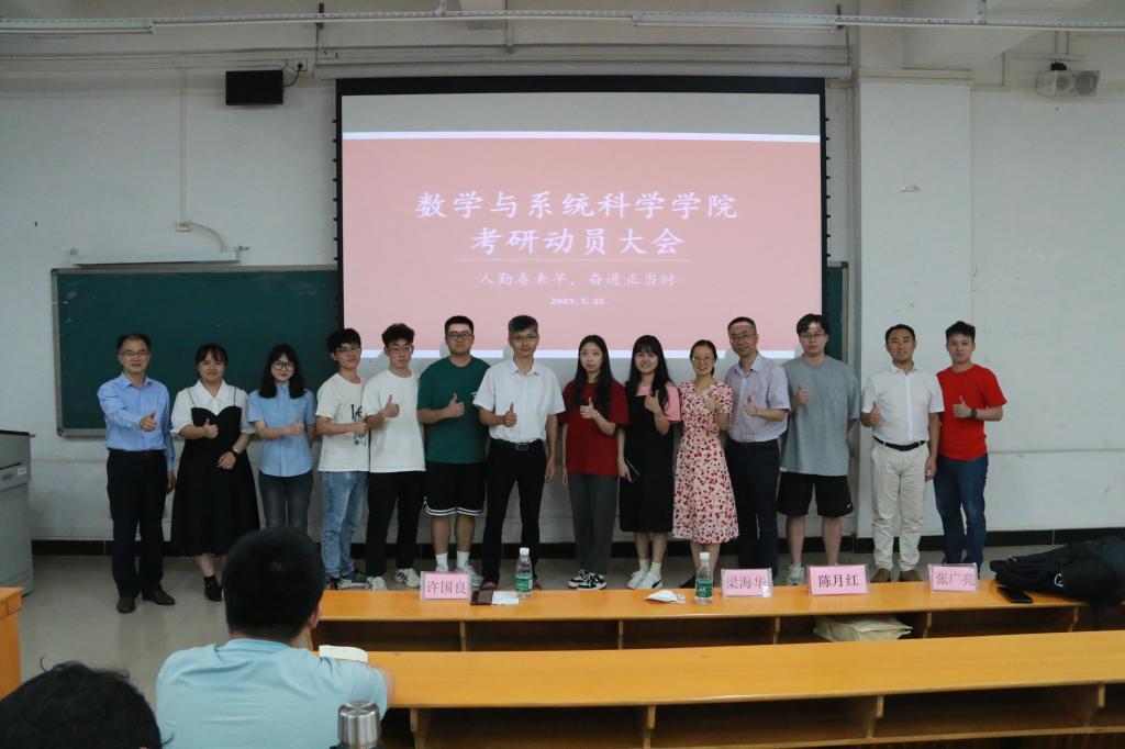 为深化同学们对考研的认识,充分调动同学们考研积极性, 5月23日晚上,我院在三教113室召开2024届考研动员及经验分享交流会。学院院长梁海华、副院长陈月红、数学系系主任张广亮、辅导员张洪杨、曾祥龙以及8名19级考上研究生的同学出席此次会议,会议由党委副书记许国良同志主持。