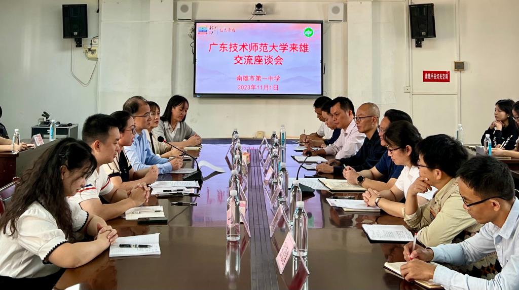11月1日上午,广师大一行先抵达南雄市第一中学,南雄市教育局局长卢锦华、南雄一中党委书记何海荣热情接待。座谈会上,卢锦华介绍了南雄市教育基本情况,提出南雄市存在教师老龄化严重、人才招聘跟不上需求、个别学科教师(数学、物理、思政等)紧缺等现状,并对定向培养生提出三点建议:加强师德养成教育、提升教师专业水平和管理水平、培育肯干愿干吃苦耐劳精神,并真诚希望与我校能达成友好共识,推进南雄市教育事业的发展。