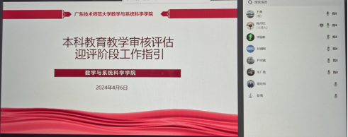 2024年4月6日,数学与系统科学学院召开线上工作会议,会议由学院教学副院长陈月红主持,学院各系部主任、专业负责人、实验室主任及学科竞赛负责人等参加。本次会议重点学习学校近期发布的本科教育教学审核评估迎评阶段的⼯作指引。