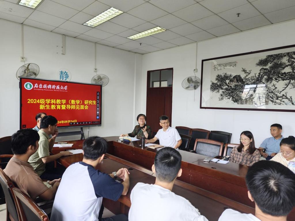 梁海华院长详细介绍了学院概况、师资力量、学科特色、研究成果及人才培养模式。他还传达了习近平总书记9月9日至10日出席全国教育大会的重要讲话精神,以教育家精神的内涵来鼓励学生们在夯实专业基础知识外,积极参加学术前沿讲座和参与学科竞赛,磨练教育教学技能和提升专业素养,为将来成为一名优秀的数学教师做好准备。