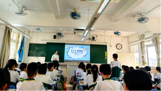 在秀全外国语学校的听课环节,学院实习生连腾在初一(16)班以《多项式》为主题进行了公开课讲授。他通过实例引导学生深入理解多项式相关概念,运用流程图、表格等多种教学辅助工具,有效促进了学生对知识点的掌握。课堂上,师生互动良好,课堂氛围活跃。