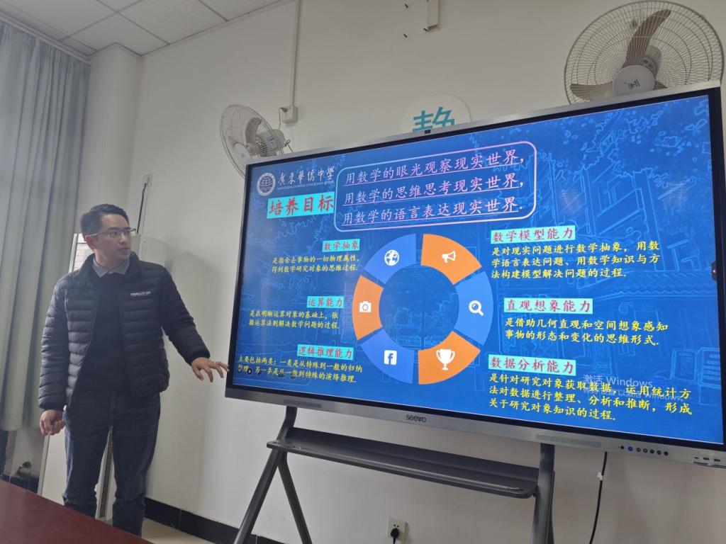 蔡志源老师以《浅谈核心素养视域下的数学课堂教学策略》为题,从核心素养和数学课堂教学两个方面的融合进行深度思考和分享。特别是报告最后两个课堂教学案例“勾股定理”和“因式分解”的演练,更是直观生动的为同学们阐述了如何上好一堂数学课。蔡志源老师还特别强调信息技术与数学的应用,信息技术的加入能使数学课堂教学更加生动有趣,调动学生的学习兴趣。比如几何画板、Geogebra、网络画板,还有其他数学信息资源“洋葱数学”、“学科网”、“箐优网”等,都是在一线数学教学中强有力的知识检索和储备工具。