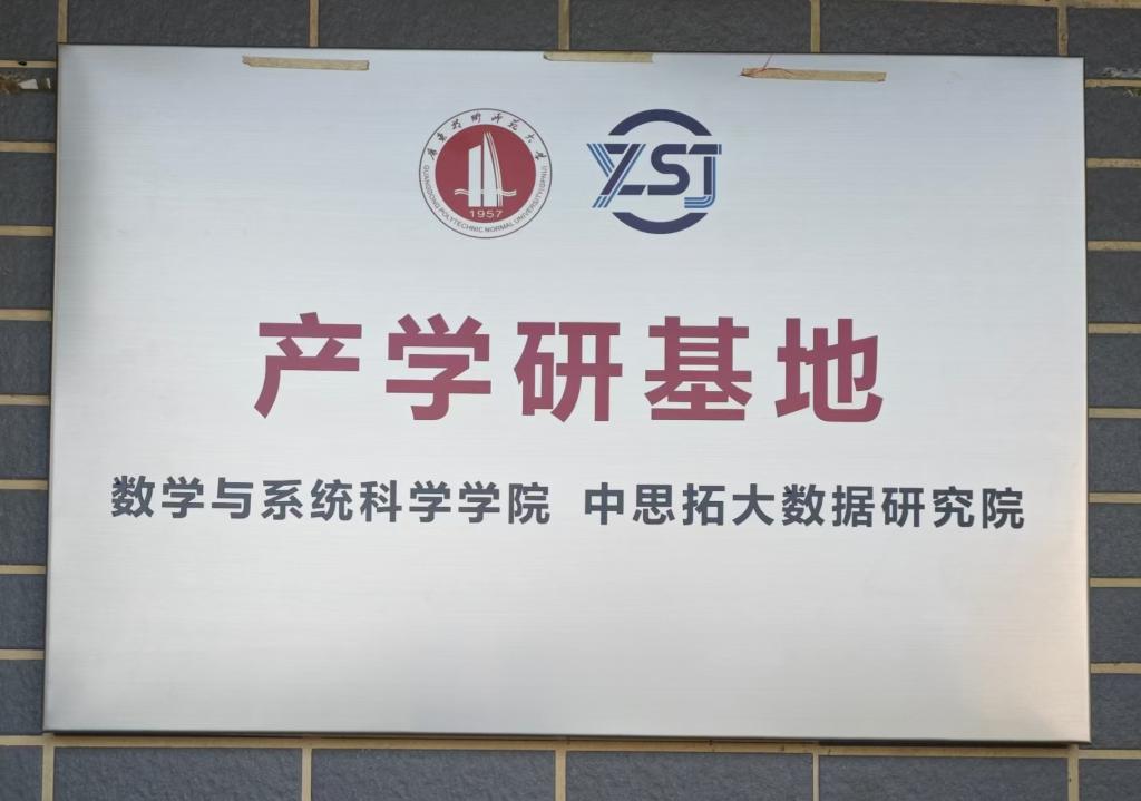 为进一步推进产教融合,加强产学研一体化实践基地建设,9月17日上午10点,数学与系统科学学院(以下简称“数科院”)与广东中思拓大数据研究院有限公司(以下简称“中思拓研究院”)在白云校区第三实训楼205室举行了“产学研基地”挂牌仪式。相关校领导、中思拓研究院徐静院长及有关人员、数科院党政领导班子及教师代表、学生代表参加挂牌仪式。仪式由数科院梁海华院长主持。