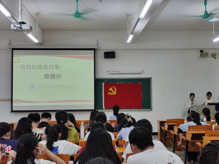 2023年6月8日下午,数学与系统科学学院学生党支部于白云校区三教203召开了2023年上半年发展对象通表大会。我院学生党支部书记王婷婷以及全体学生党员出席了本次通表大会,会议由支部书记王婷婷主持。