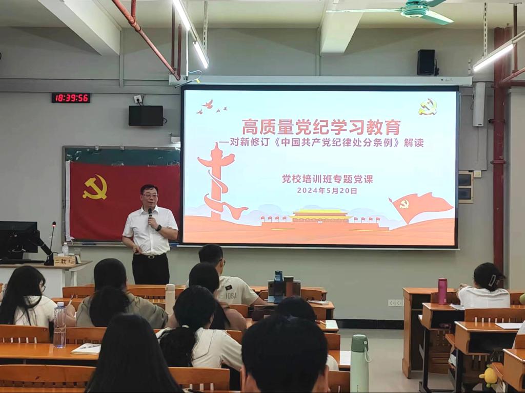 5月20下午,数学与系统科学学院本科生党支部在白云校区二教404开展党纪学习教育学习,本次学习邀请了外国语学院党委书记杨伟光主讲