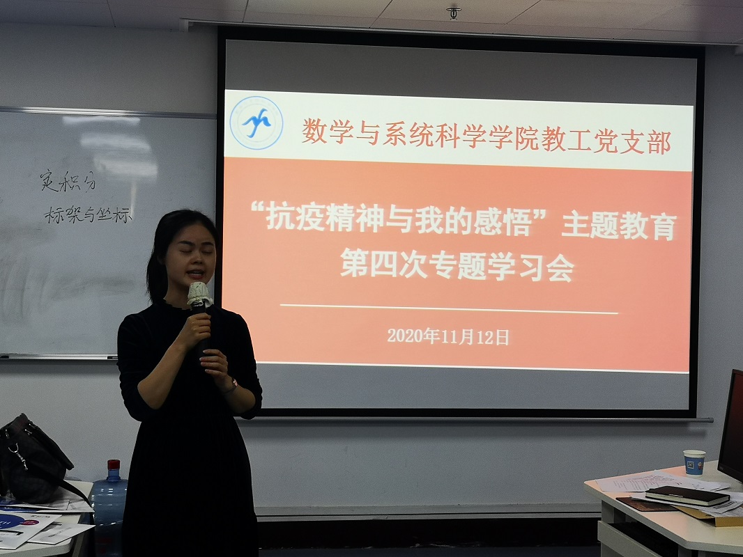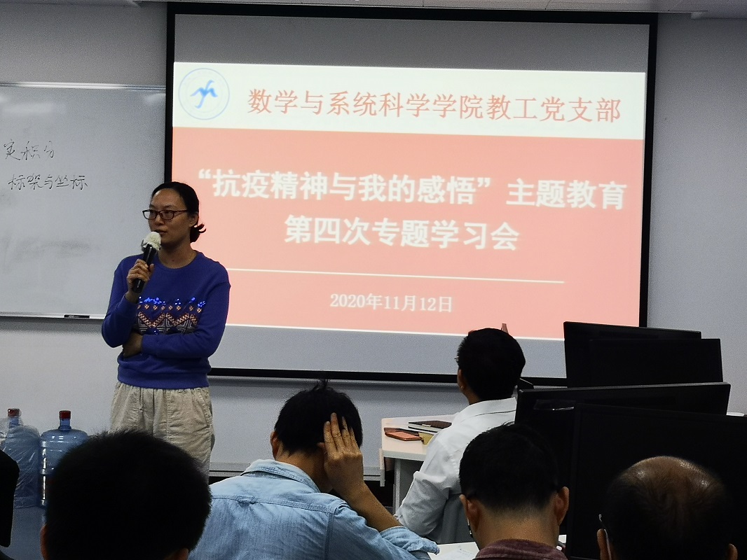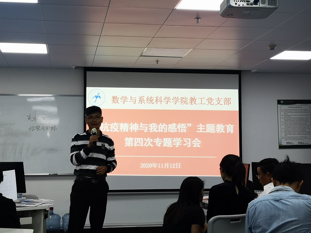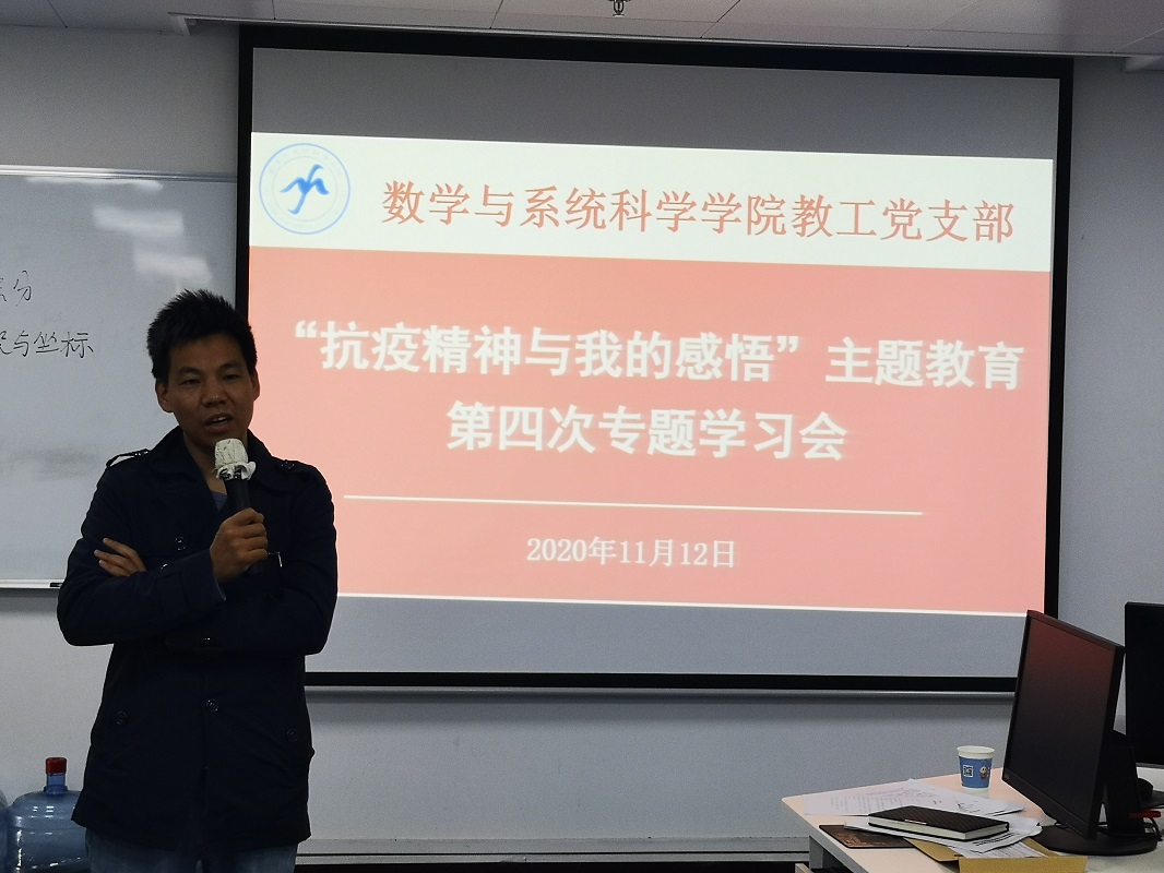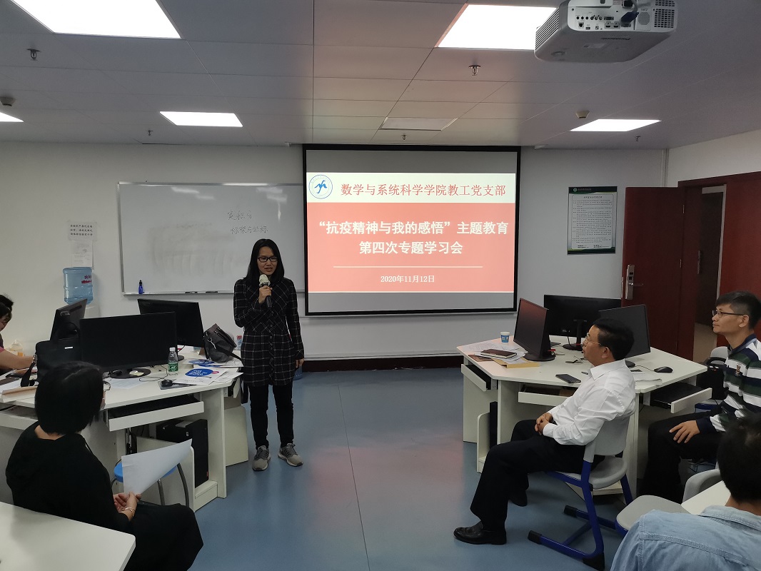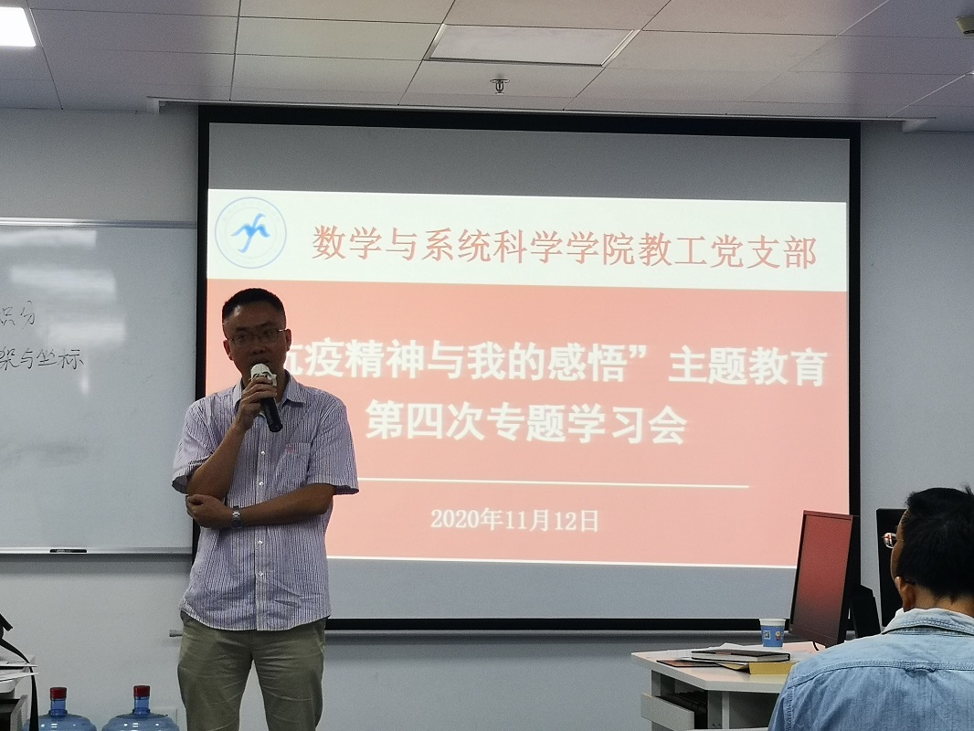 根据《数学与系统科学学院2020年“书记项目”实施方案》的部署,我院教工党支部召开党支部会议暨“抗疫精神与我的感悟”主题教育第四次专题学习会。