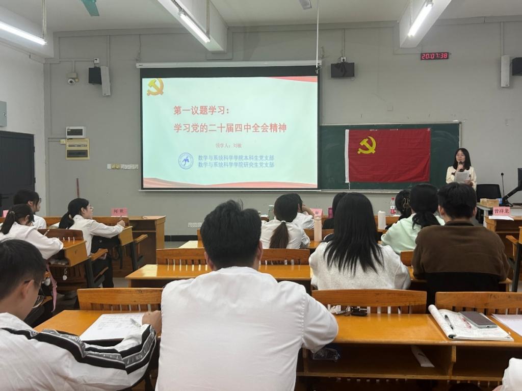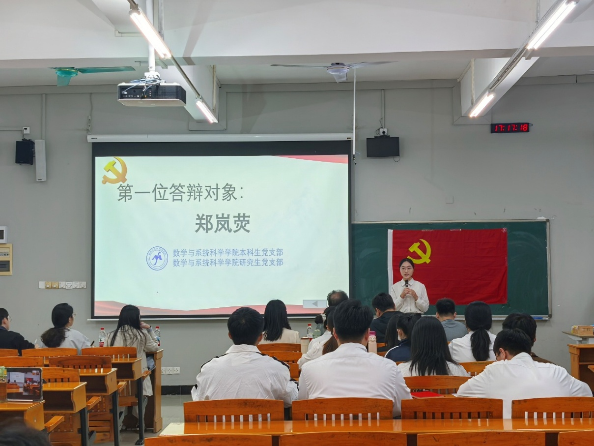2025年11月3日晚,数学与系统科学学院本科生党支部与研究生党支部在三教202召开2025年下半年确定入党积极分子为发展对象答辩会议,数学与系统科学学院党委副书记许国良、本科生党支部书记刘敏、辅导员唐艳杰、亚地卡尔、曾祥龙、何欣、刘嘉棋以及全体学生党员参加了本次会议,会议由刘敏主持。