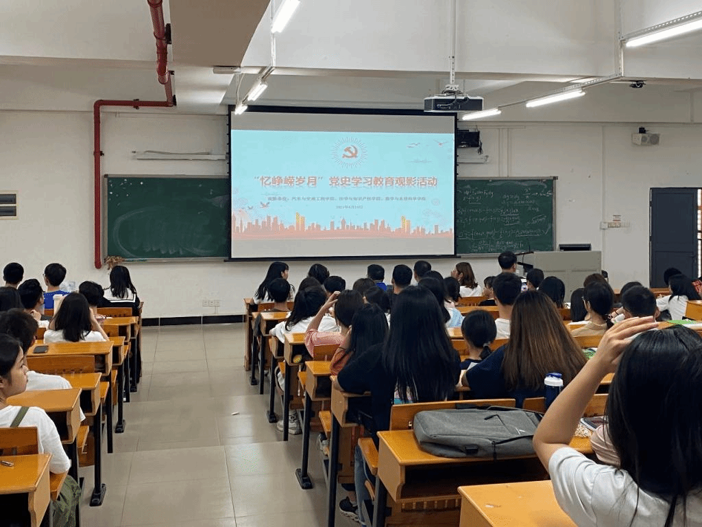 为深入推进党史学习教育,激发学生的党史学习教育热忱,更好的引导学生学史明理、学史增信、学史崇德、学史力行。汽车与交通工程学院、法学与知识产权学院、数学与系统科学学院,于2021年4月14日下午在白云校区第三教学楼409教室举办了“忆峥嵘岁月”党史学习教育观影活动。各学院党委(总支)副书记、辅导员、学生党员及入党积极分子参加了此次活动。