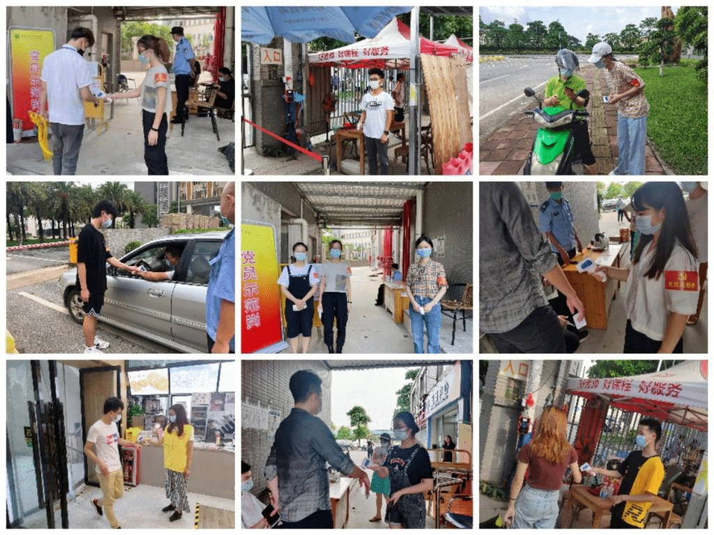 为充分做好疫情防控和维护好校园稳定安全工作。6月9日至6月18日在学校组织部的安排部署下,我院师生党员积极响应号召,学院党委书记白雪飞、党委副书记许国良,辅导员及学生党员踊跃报名参加党员志愿者服务,分别在学校正门、侧门和后门进行测量体温、查看粤康码等志愿服务。党员同志们充分发挥了先锋模范作用,纷纷加入到疫情防控志愿者服务中来,用自身实际行动为校园疫情防控奉献一份力量,用行动温暖了校园,成一道靓丽的风景线。