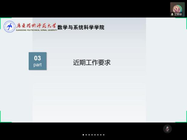 为更好地发现并解决同学们由疫情引发的心理健康问题,我院于2020年5月19日召开了心理委员线上培训会议。本次会议学院心理辅导站站长王婷婷老师就当前疫情下对心理委员工作提出了新的要求,强调心理委员们要时刻关注班上同学的心理变化和及时向学院反馈情况。