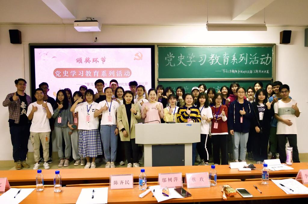 为深入推进党史学习教育,引导学生在学思践悟中成长成才;4月8日晚,我院20级学生在河源校区唯实楼217开展了党史学习教育---“学习三牛精神,争做时代先锋”主题演讲比赛。河源校区管委会蔡玫老师、邬树萍老师、文传学院谢昌文同学作为评委嘉宾出席本次比赛。