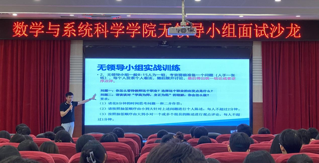 为进一步强化毕业生求职技能,营造良好求职就业氛围。4月6日,数学与系统科学学院在白云校区三教104举办无领导小组面试沙龙,19、20级数学师范专业学生现场参与。此次沙龙邀请了20级研究生邱彬彬做备考教师编制和无领导实战经验分享、辅导员曾祥龙做无领导小组面试解题逻辑和技巧分享,并现场进行了真题演练。