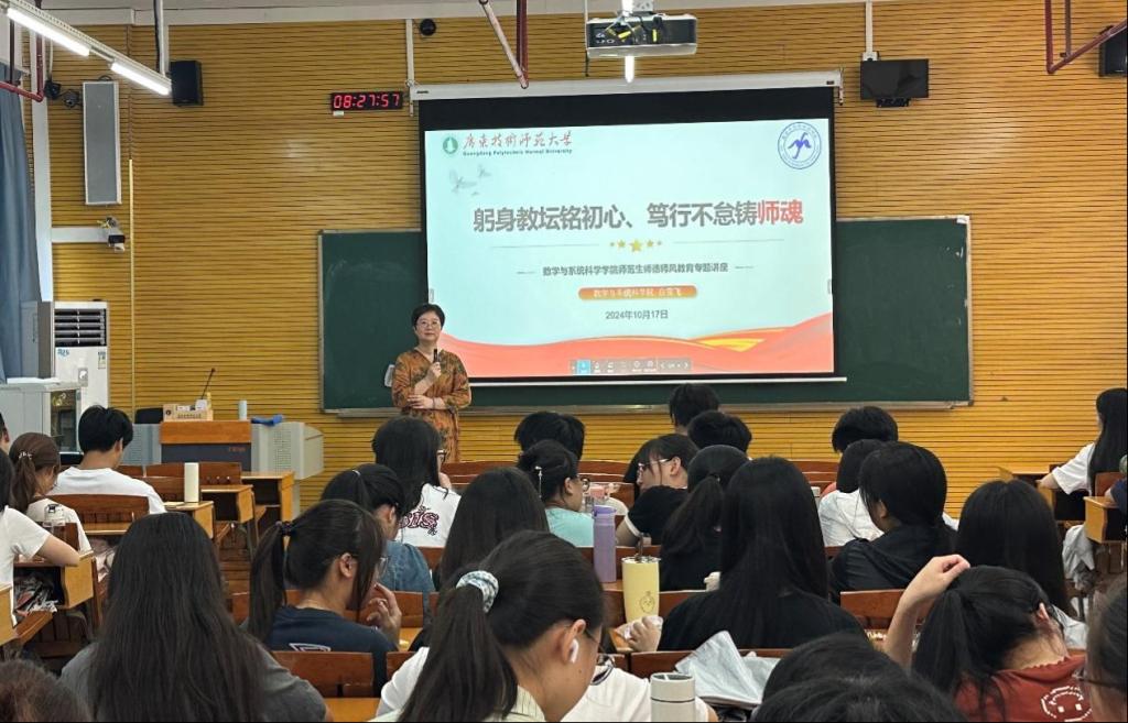 为加强师德师风建设,提升师范生的职业道德素养,数学与系统科学学院于10月17日在白云校区三教201开展了“躬身教坛铭初心,笃行不怠铸师魂”师德师风教育主题讲座,主持人为我院党委书记白雪飞,23数师3班和23数师4班的同学参与学习。