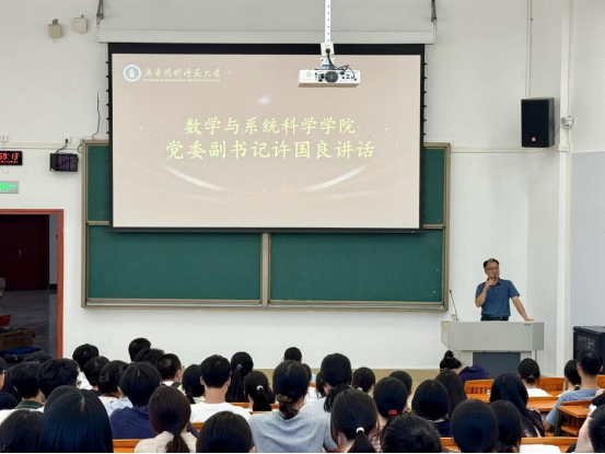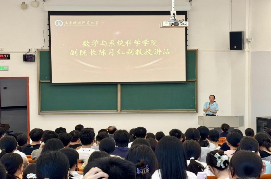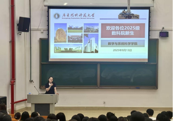 陈月红围绕学院概况与专业发展作专题讲话。她详细介绍了数学与应用数学、信息与计算科学、应用统计学三个专业的培养特色,并重点解读了“数学卓越教师班”的遴选机制与培养模式。陈院长指出,大学教育的核心在于“唤醒自主、鼓励探索、塑造主体”,她鼓励新生在确定与不确定之间寻找锚点,通过有效努力和深度思考,锤炼纯粹严谨的“数学生活观”,成为具备反思能力与内在定力的复合型人才。