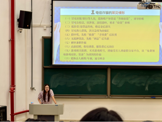 何红梅对新生进行反诈骗教育,重点剖析了校园贷、网购售后、游戏交易等常见骗局,提醒新生牢记“不轻信、不转账、不泄露”原则,通过官方渠道核实信息,保护个人信息与财产安全,遇到可疑情况及时求助。