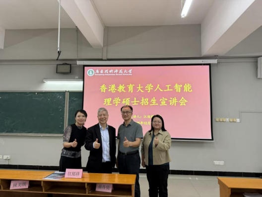 为帮助我院学子明晰人工智能领域深造方向,搭建优质研究生升学桥梁,10月13日香港教育大学人工智能及数码能力教育中心总监江绍祥教授、行政主任陈美琪以及数学与资讯科技学系副教授孙丹儿一行莅临我院开展人工智能理学硕士招生宣讲会。我院近150名有志于深造的学子参会,现场了解硕士申请与培养细节。