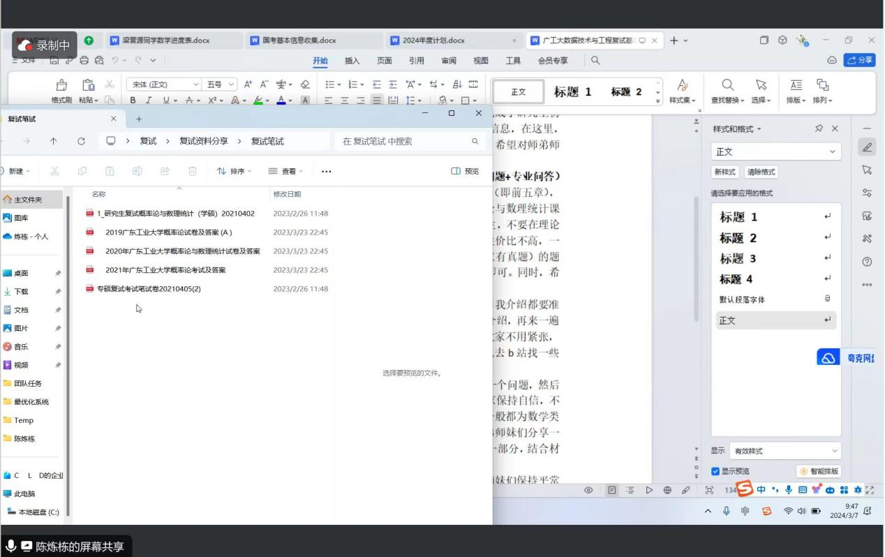 2024年3月4日开展了2024届考研复试/调剂座谈会,党委书记白雪飞、党委副书记许国良、应用统计系专业负责人蒋经华、辅导员曾祥龙出席了本次会议。