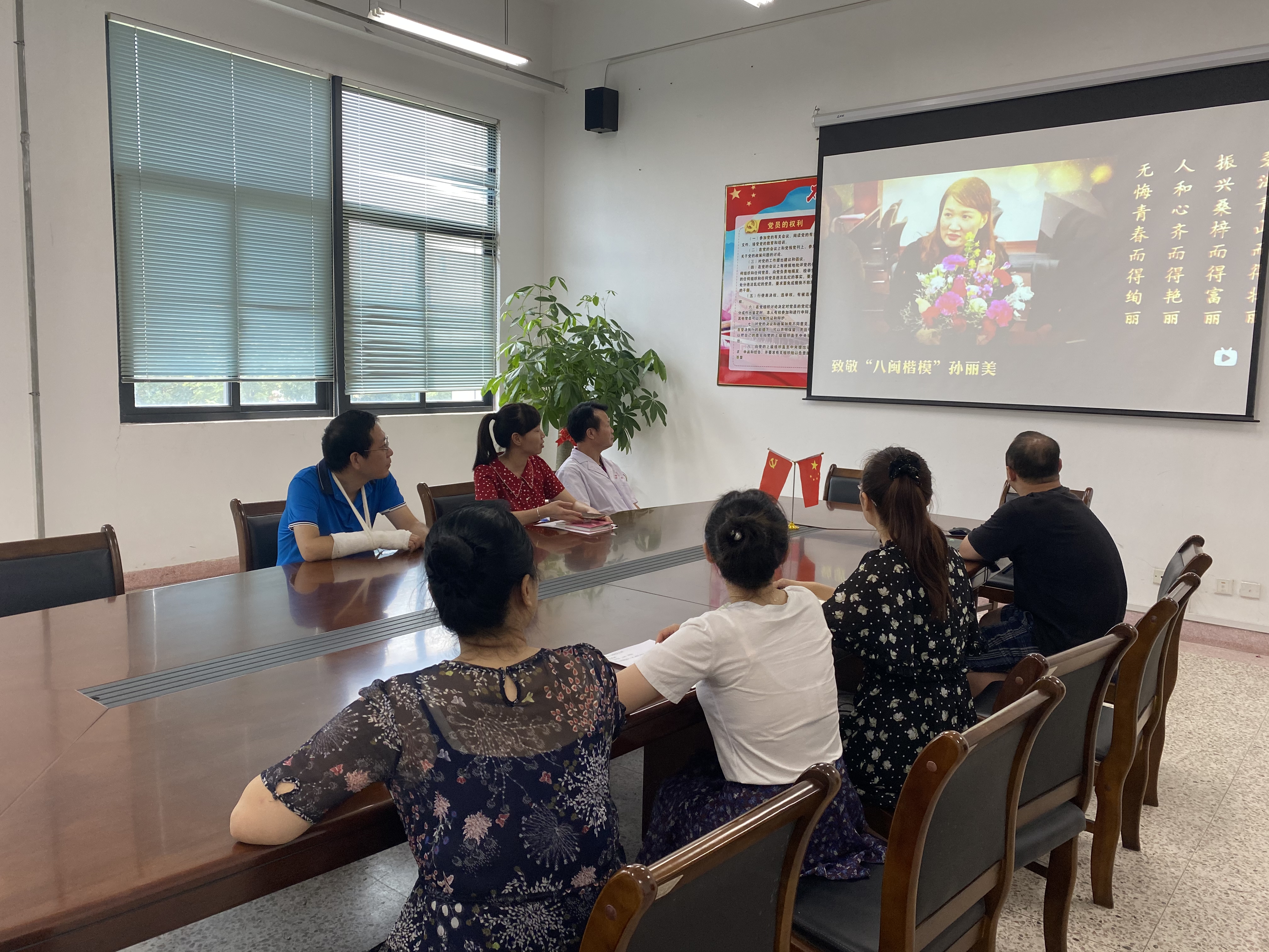9月8日上午11:00,临床技能教学中心党支部组织全体党员和积极分子在会议室开展孙丽美同志先进事迹学习会。会上传达了《中共福建省委关于追授孙丽美同志“全省优秀共产党员”称号并开展向孙丽美同志学习活动的决定》,观看了孙丽美先进事迹宣传材料,重温学习了孙丽美同志先进事迹。
