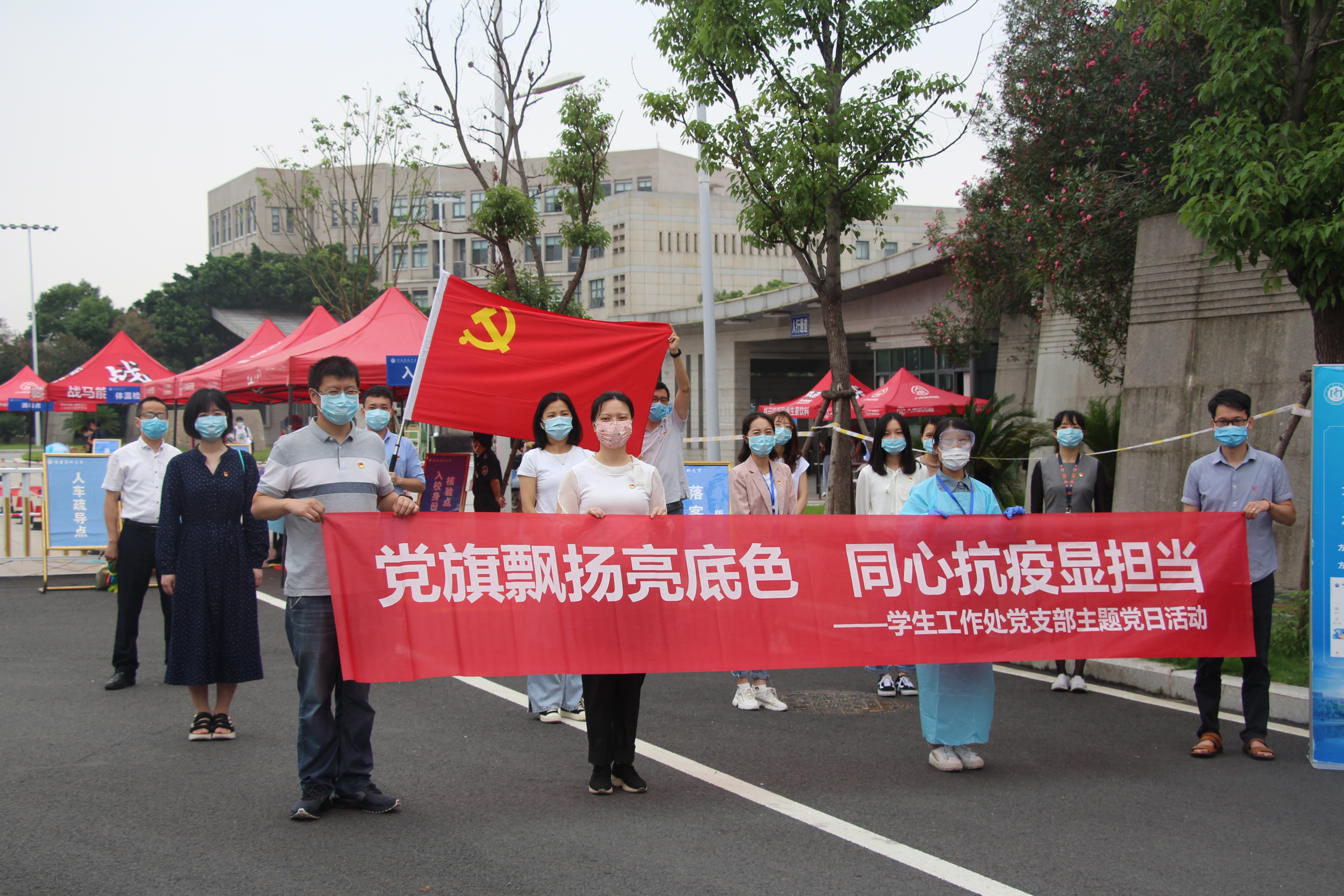 5月28日,正值学生错峰分批返校之际,学生工作处党支部通过组织支部全体党员协助学生返校相关工作,开展了“党旗飘扬亮底色 同心抗疫显担当”的主题党日活动。为做好学生返校复学工作,学校在校门口专门设置学生返校专用通道,支部党员在现场总体协调、处理临时突发等问题,引导学生有序地排队进行身份核验、健康码查验、体温测量、行李消毒、口罩更换、核酸检测,保障学生返校复学秩序井然。